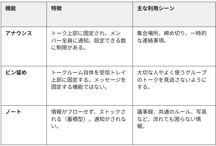 1-3. アナウンスと「ピン留め」「ノート」との違い
