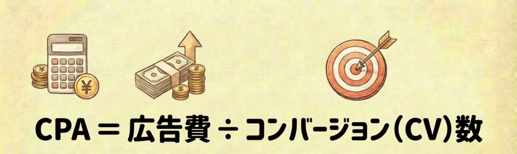 CPA = 広告費 ÷ コンバージョン(CV)数